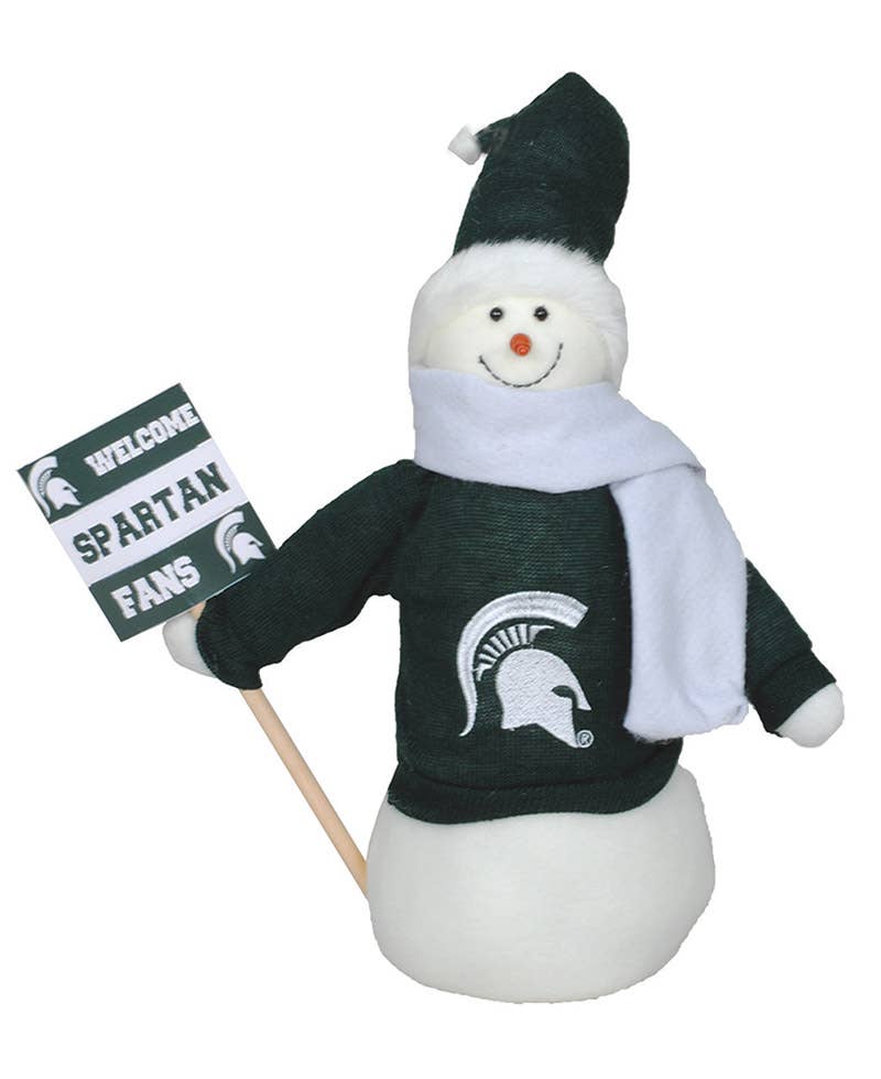 Everyone loves to show their NCAA team pride on game day! This adorable snowman is dressed for the cold, carries a school flag and is ready to cheer on his favorite college team. Handcrafted in beautiful Michigan State team colors, this wonderful 12” Michigan State Snowman Fan is sure to provide many seasons of pleasure.