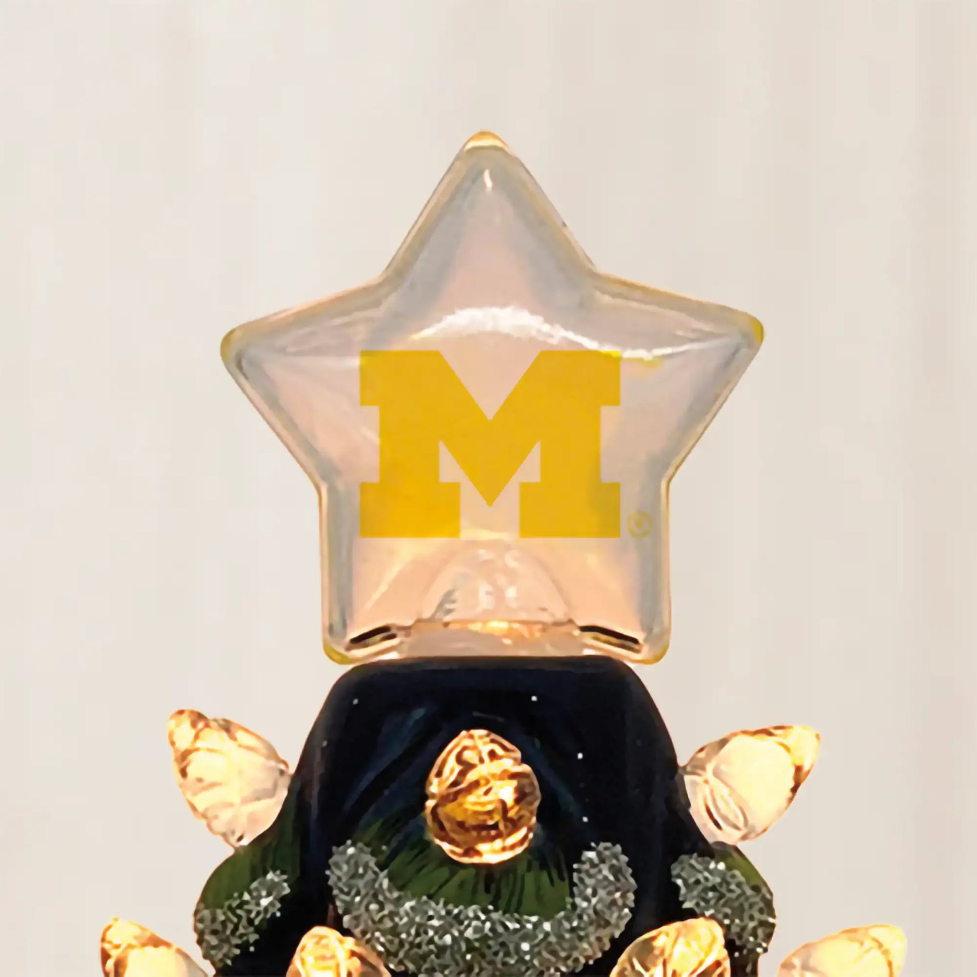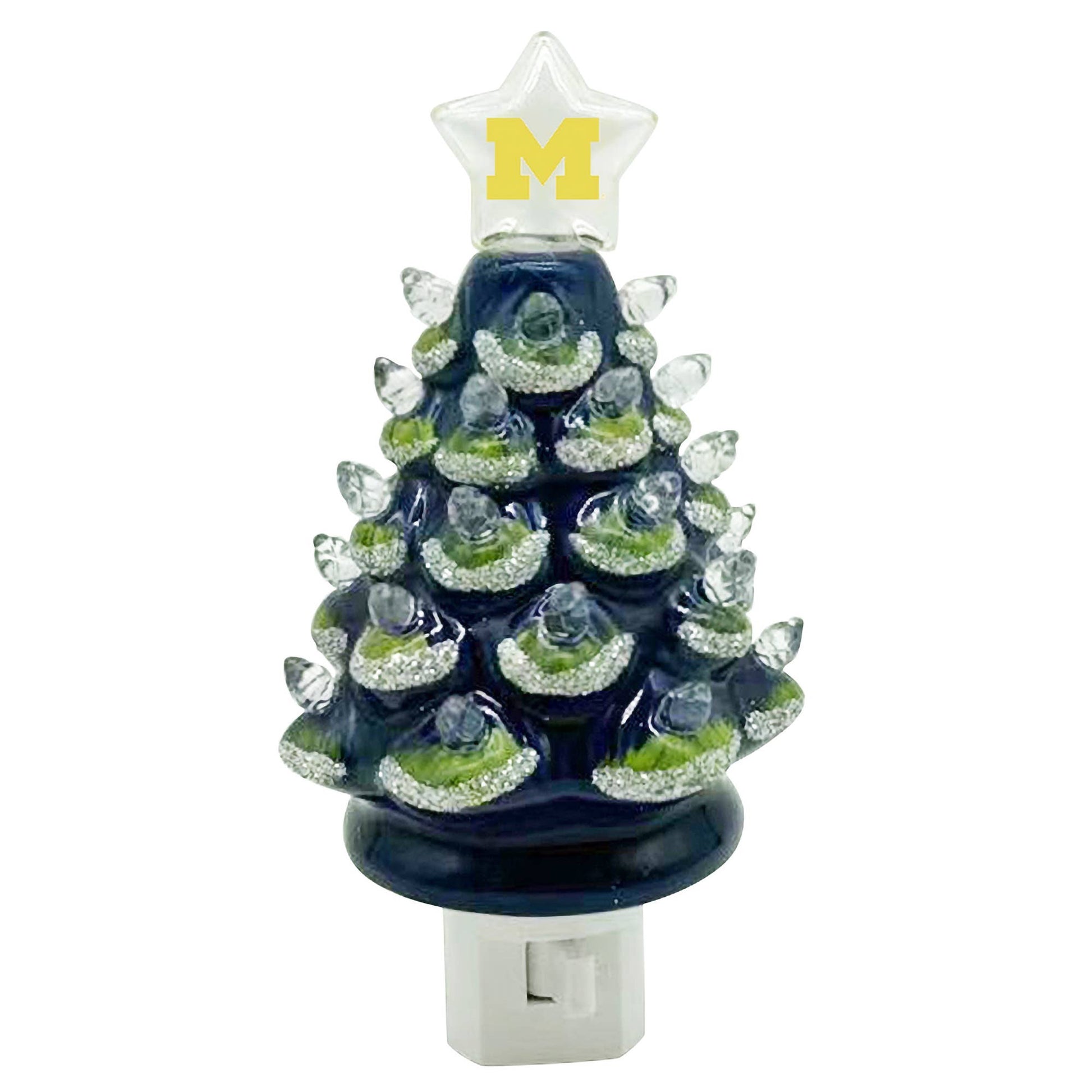 Made of long lasting, hand painted ceramic and powered by UL Approved parts, this festive school-themed Christmas night light will brighten the homes, and spirits, of all college sports fans. The clever two prong plug swivels in its base to vertically align the night light regardless of outlet orientation. Celebrate the holiday season in style with this unique school-colored 6.5” Michigan Xmas Tree Nite Lite.