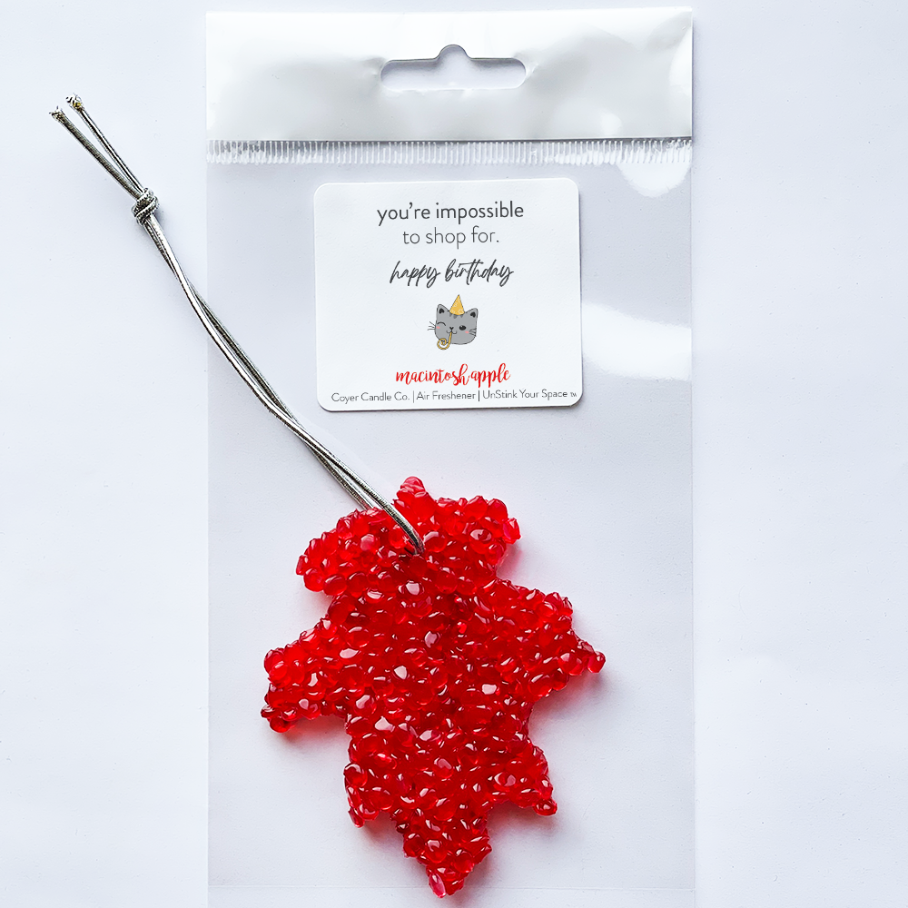 Our Air Fresheners are one of our top selling products! People of every age buy these as little gifts or fun souvenirs. These long-lasting aroma bead air fresheners will keep your car, locker, or gym bag fresh for four to six weeks.