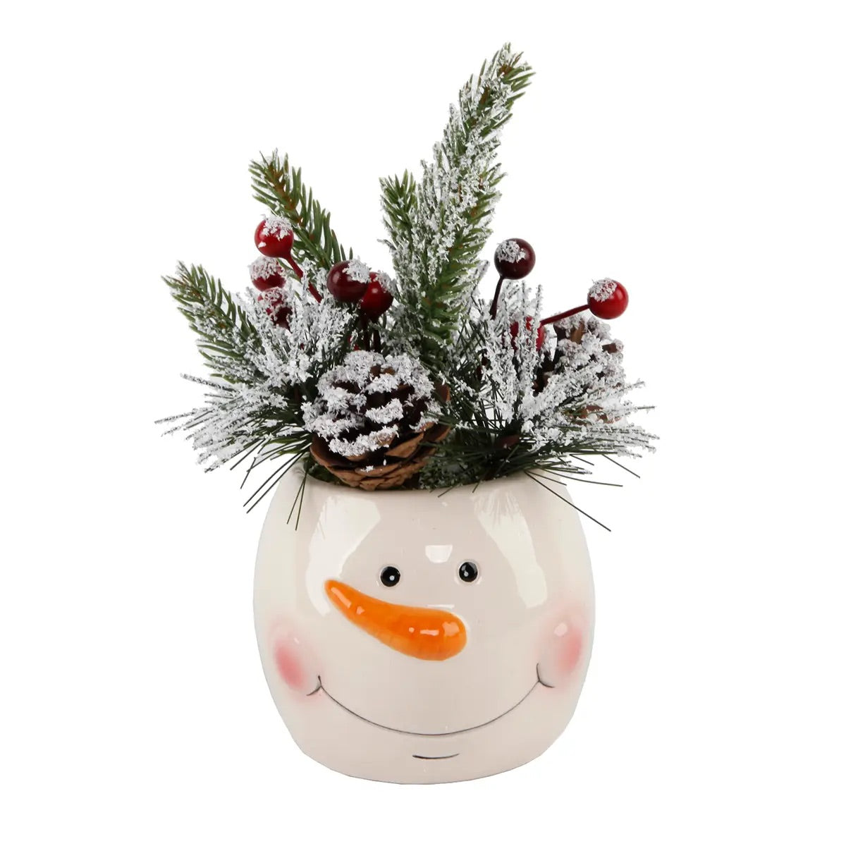 Christmas Arrangement in Ceramic Snowman Pot