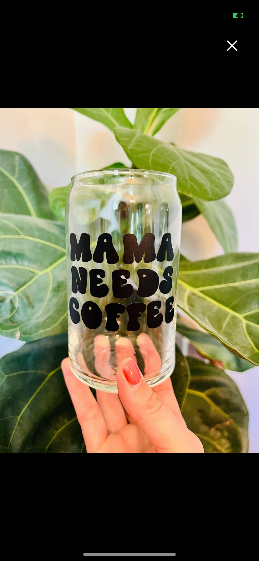 Mama Needs Coffee Beer Can Glass w/ Lid & Straw