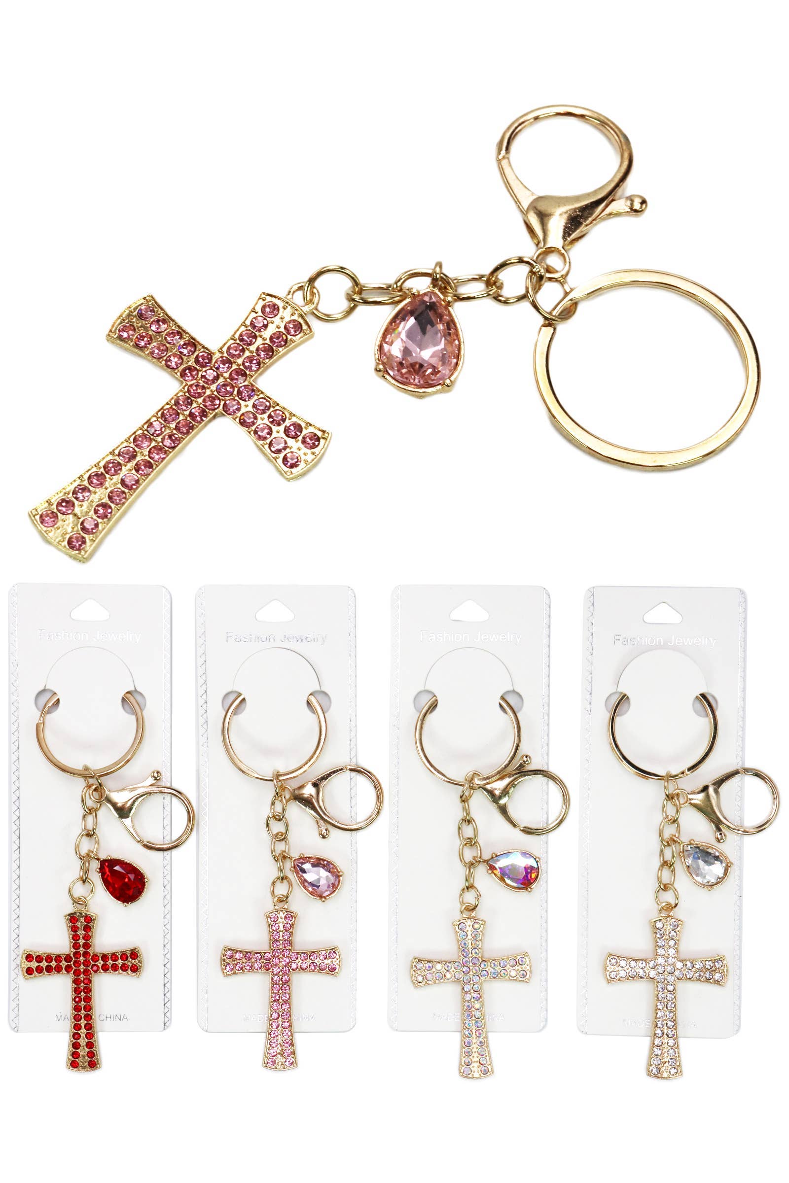 Cross Pendant Bling Rhinestone Embellished Metal Alloy Key Chain