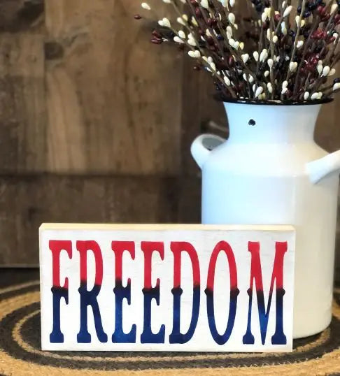 Rustic wood white shelf sitter! All of our signs are handmade in the usa on 3/4" plywood with finished back. Hand painted and sealed. Due to the artistry of hand painting and distressing, no two signs will be exactly the same. Measuring 4" x 8" x 3/4"