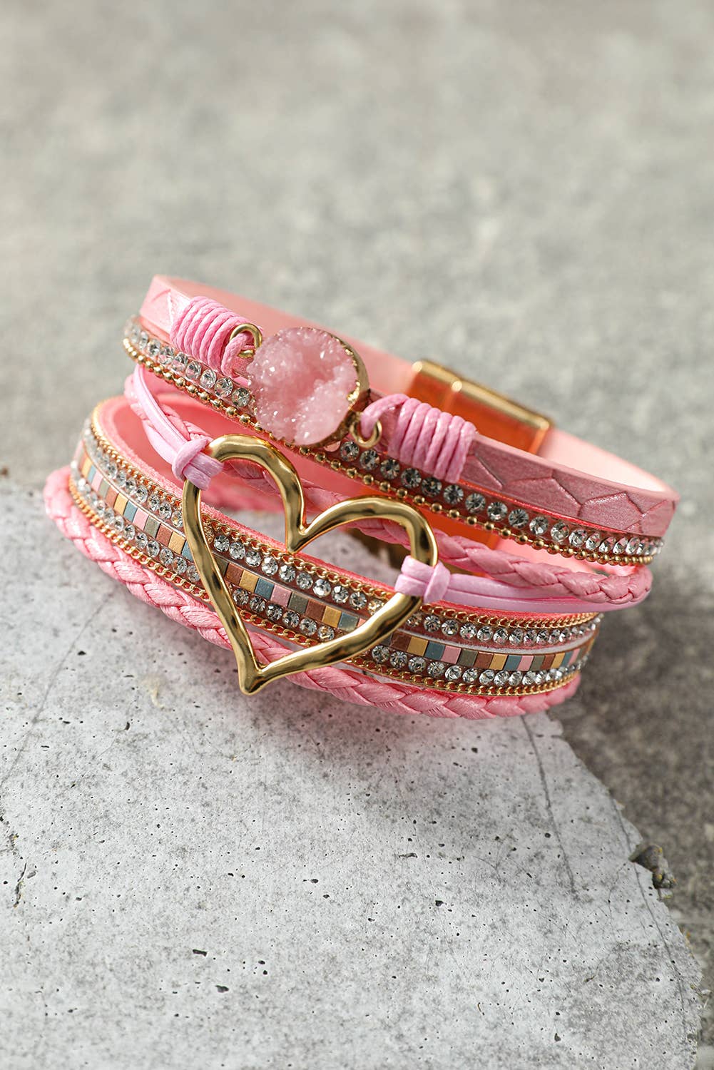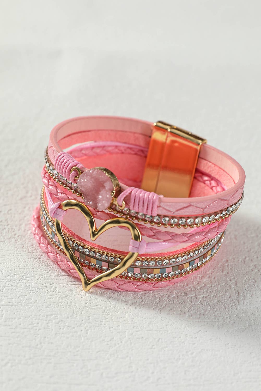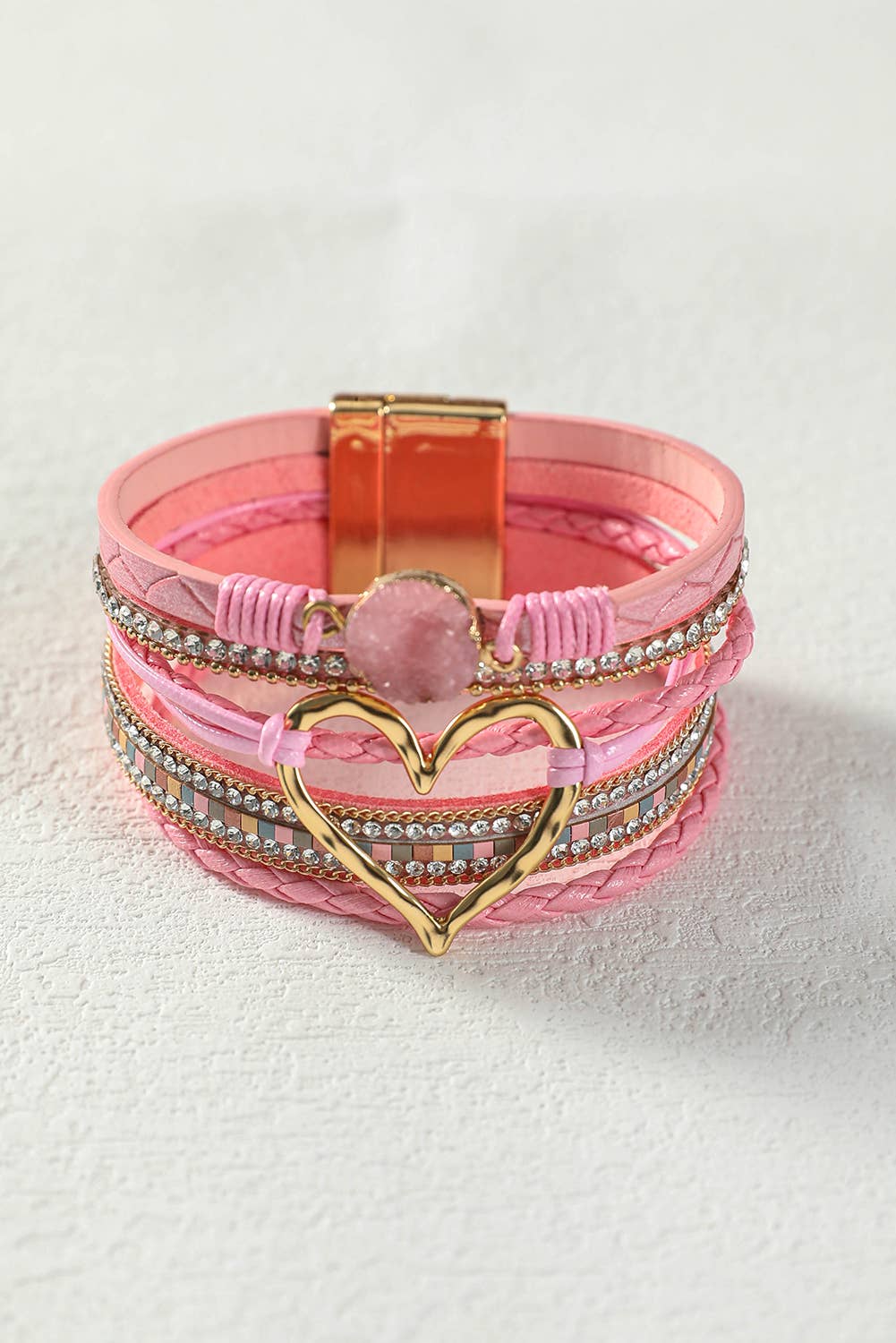 Heart Rhinestone Valentine Buckle Bracelet: As shown / Missy / Standard