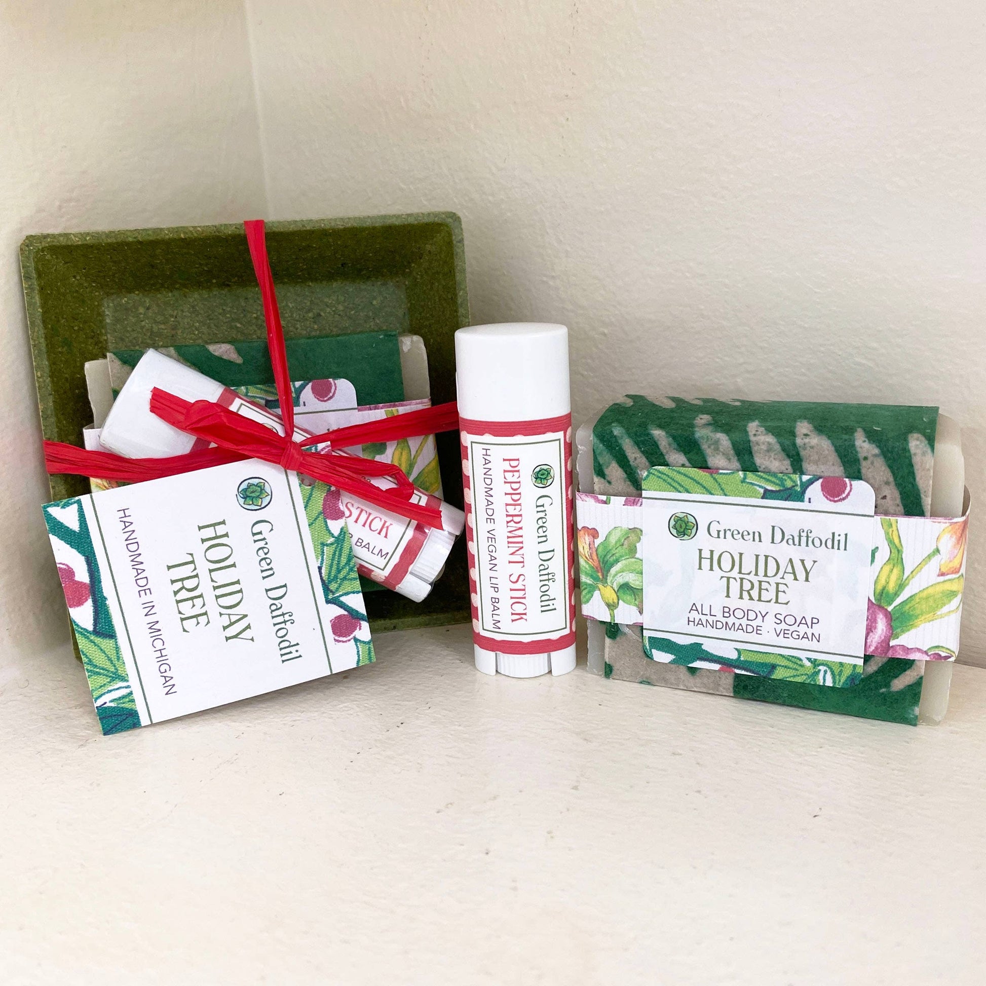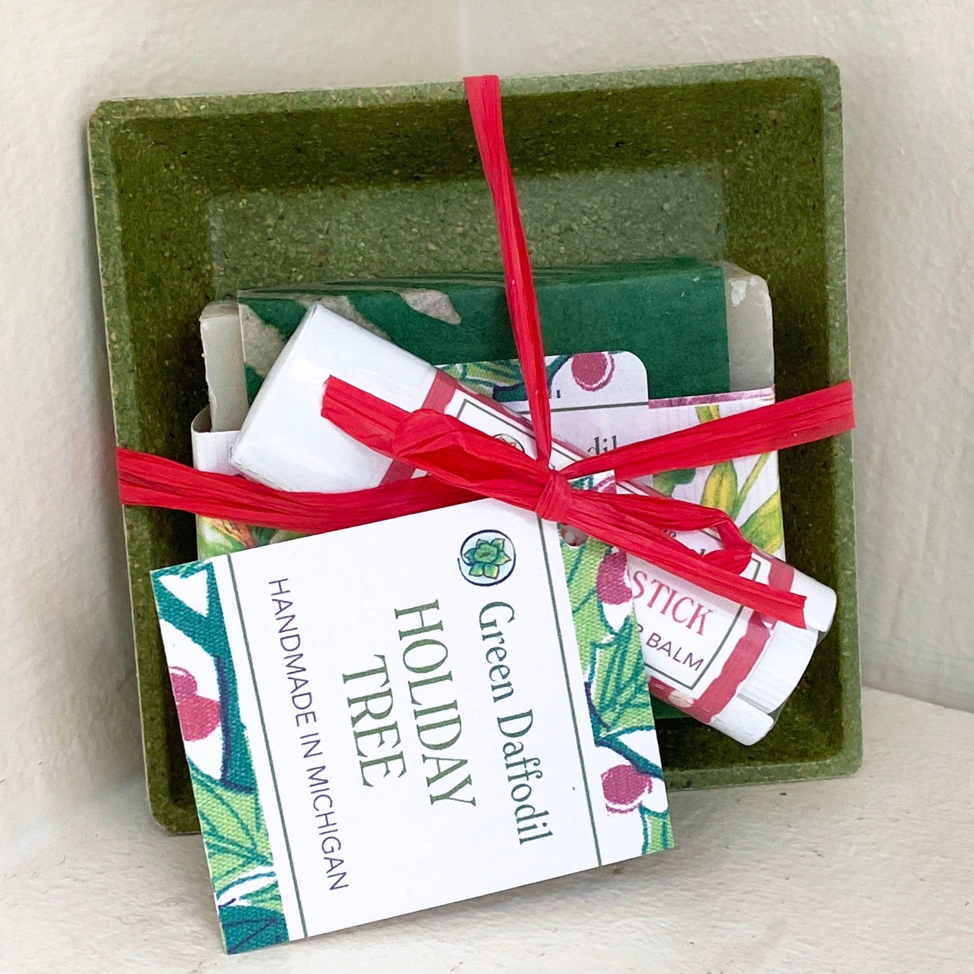 Holiday Tree Soap & Lip Balm Dish Kit - Gift Set Christmas