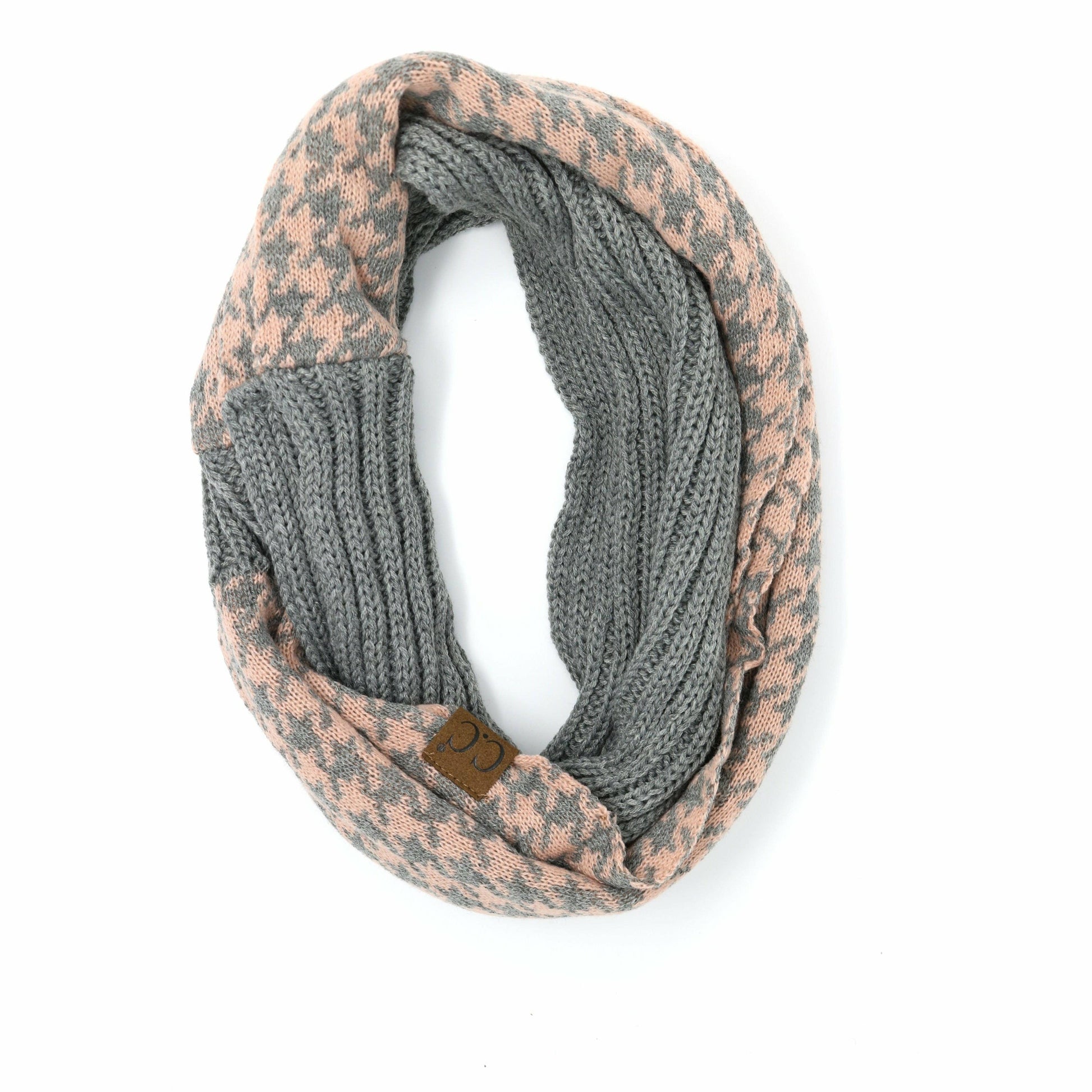 Houndstooth CC Infinity Scarf SF12: Light Grey/Indie Pink