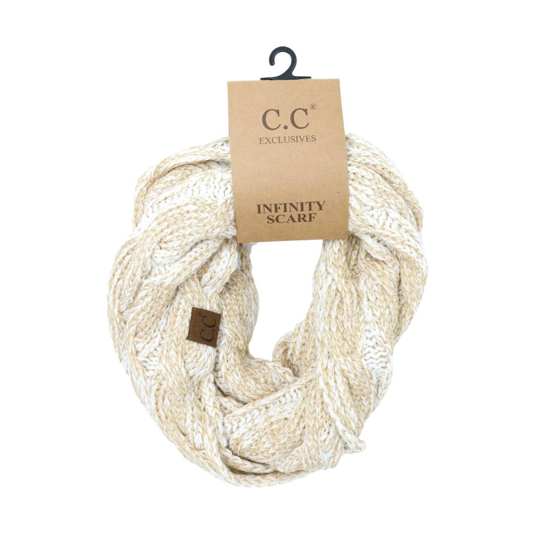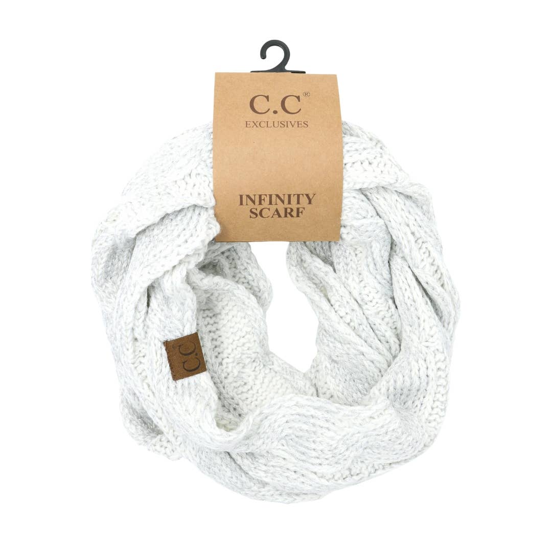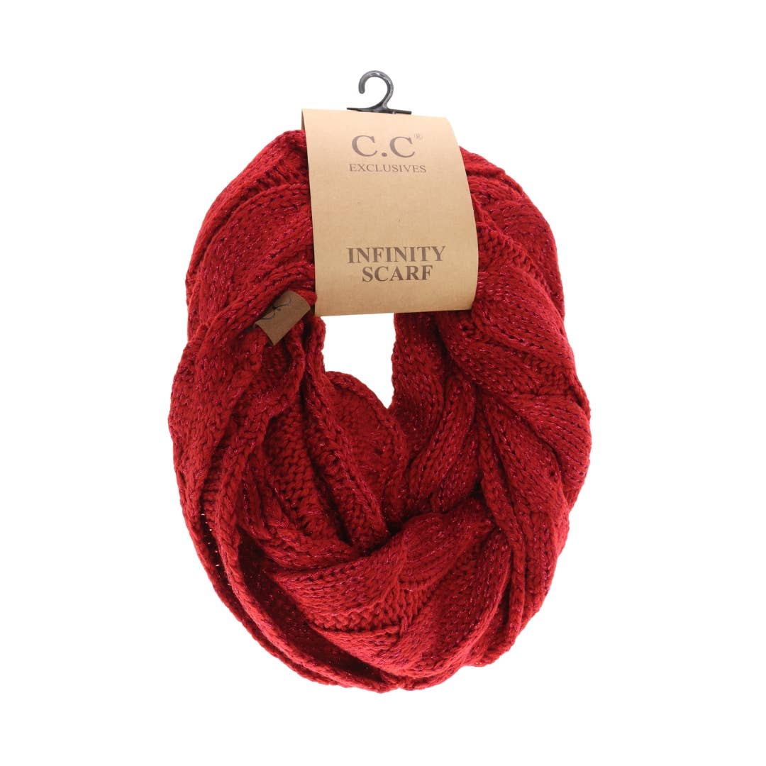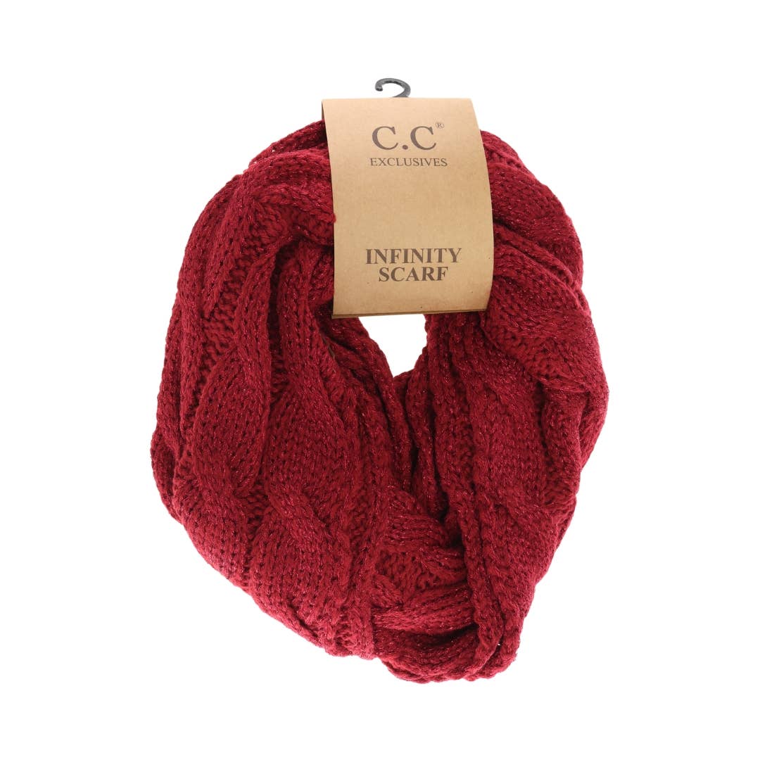 Introducing a Metallic Knit CC Scarf! Add a little shimmer to your life with these soft and stylish infinity scarves!