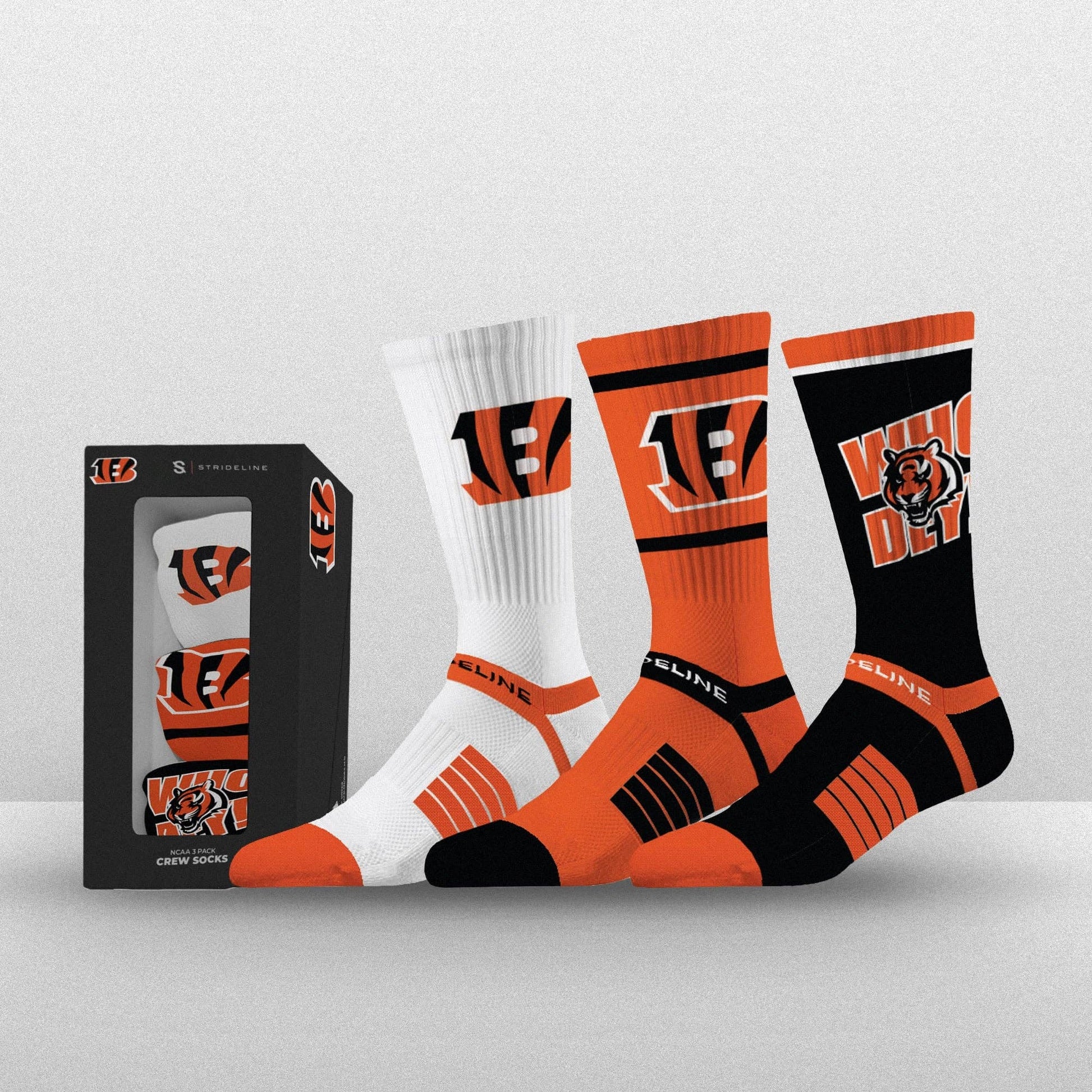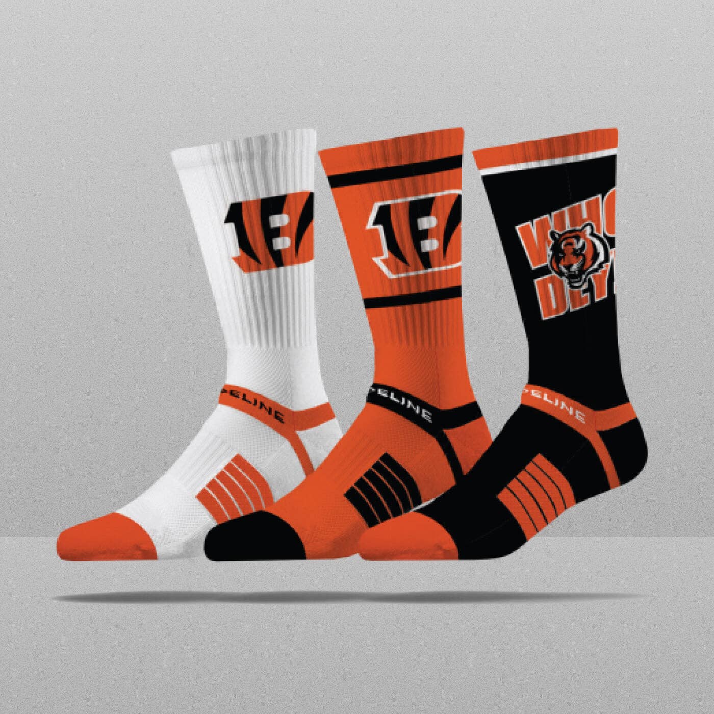 Update your roster with the NFL Performance Crew now available in 3-Packs (6 socks included). Sport excellence on game day from the sofa to the stadium in 3 style variations. This set comes in a branded box perfect for gifting to yourself or for your favorite fan.