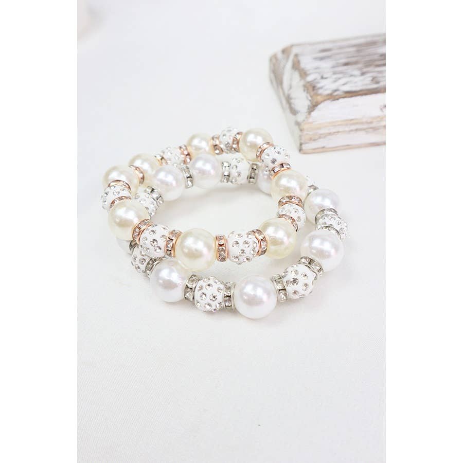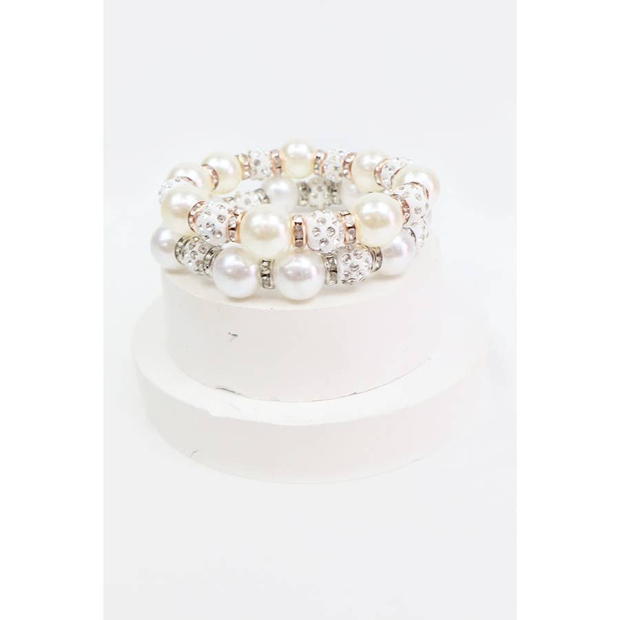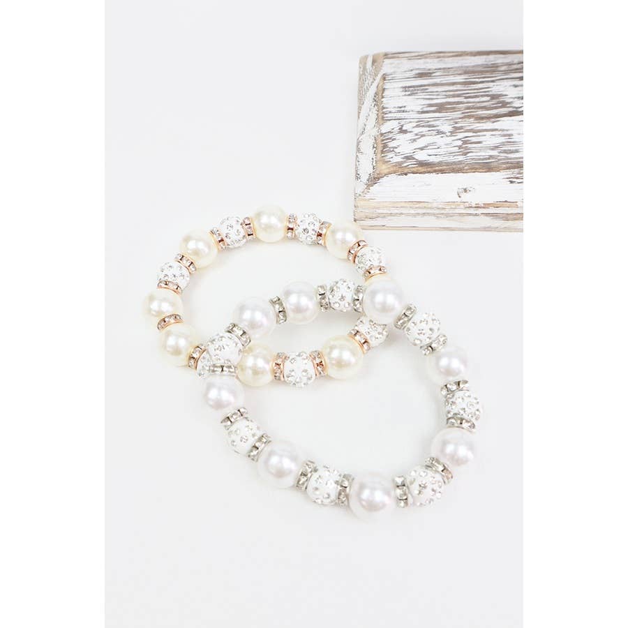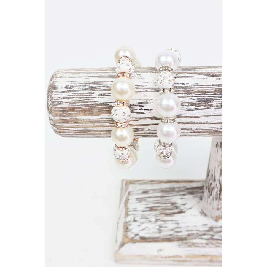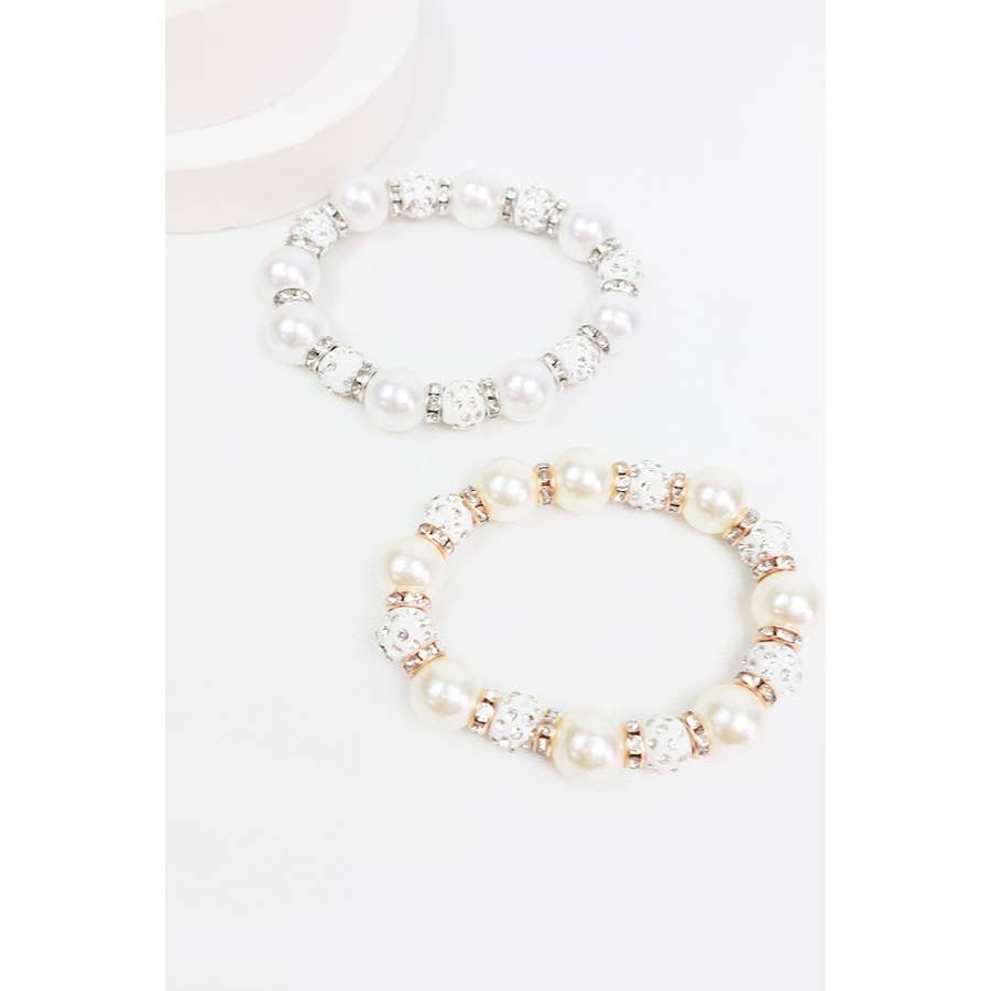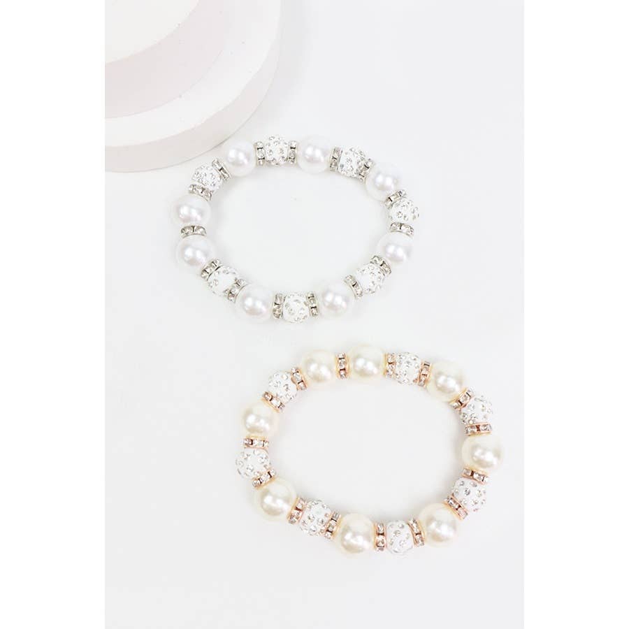 Pearl with Stoneball Bead Bracelet -Assorted Color(Pearl Gold, Pearl Silver) T