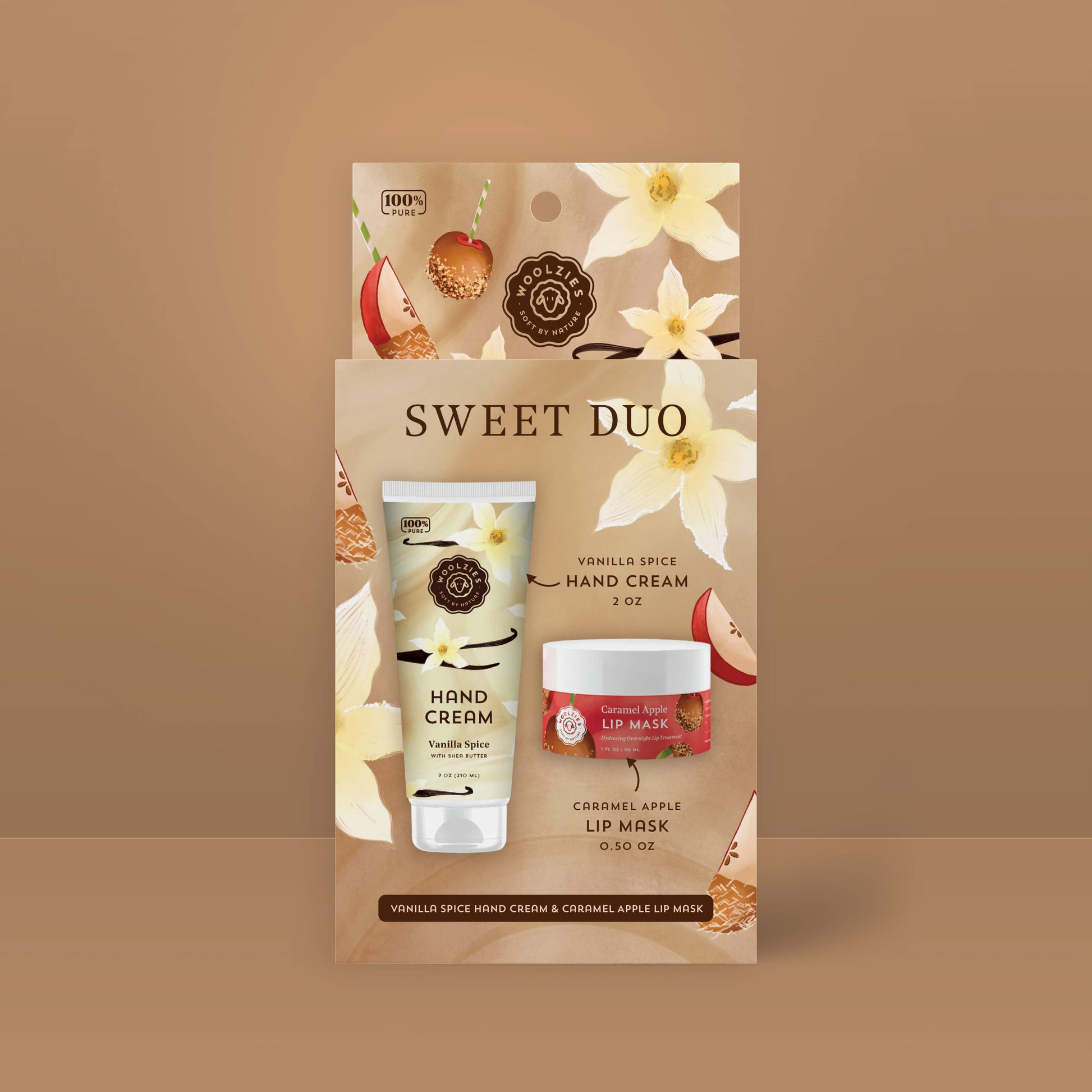 Indulge in a moment of comfort with our Sweet Duo – a cozy care set featuring a nourishing Vanilla Spice Hand Cream and a rich, hydrating Caramel Apple Lip Mask. Perfect for gifting or treating yourself, this duo soothes dry hands and lips with warm, dessert-inspired scents and skin-loving ingredients.
