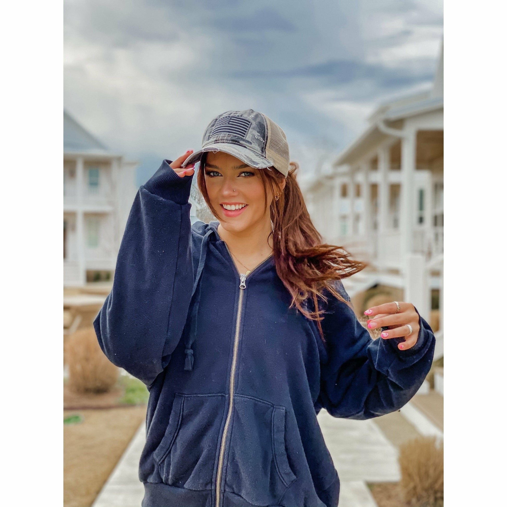 This BRAND NEW Camouflage Classic CC Ball cap adorned with a USA Flag Patch is right on trend to wear with all of your favorite summer wear. Great for shorter hair girls and even men!