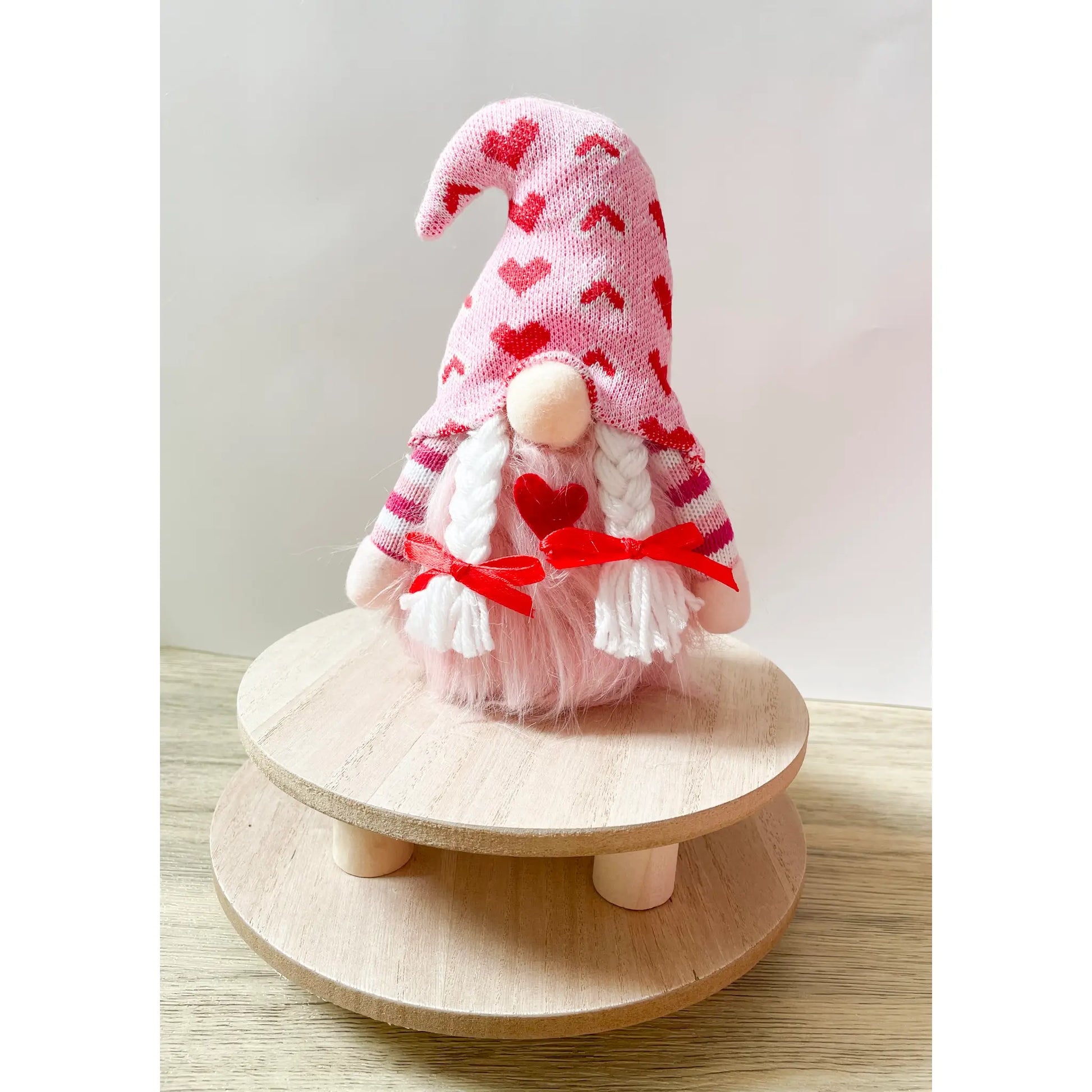 We are excited to be able to offer our beautiful handcrafted Valentine Gnomes. Our Gnomes sell out fast, so secure yours today!! In-stock, ready to ship! Size of Gnome: 8.5" X 5.5" Fun tidbit: In Scandinavian folklore, goblins/gnomes guard and protect houses from misfortune. Gnomes are known as symbols of good luck. Christmas gnomes help spread traditional holiday spirit and add a festive touch to each home. -Pink Heart Hat with White Braids.