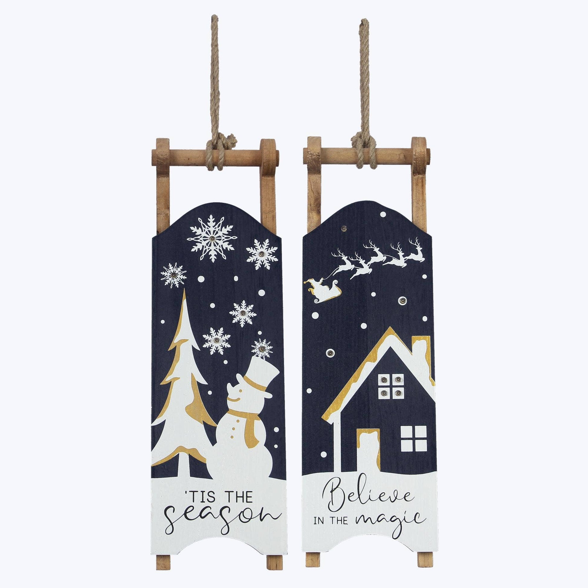 Wood Winter Solstice LED Sled Signs - Christmas Decor